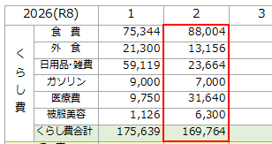 | 変動費 | 日々の暮らしのなかで発生する支出 | 食費、日用品、被服費など |